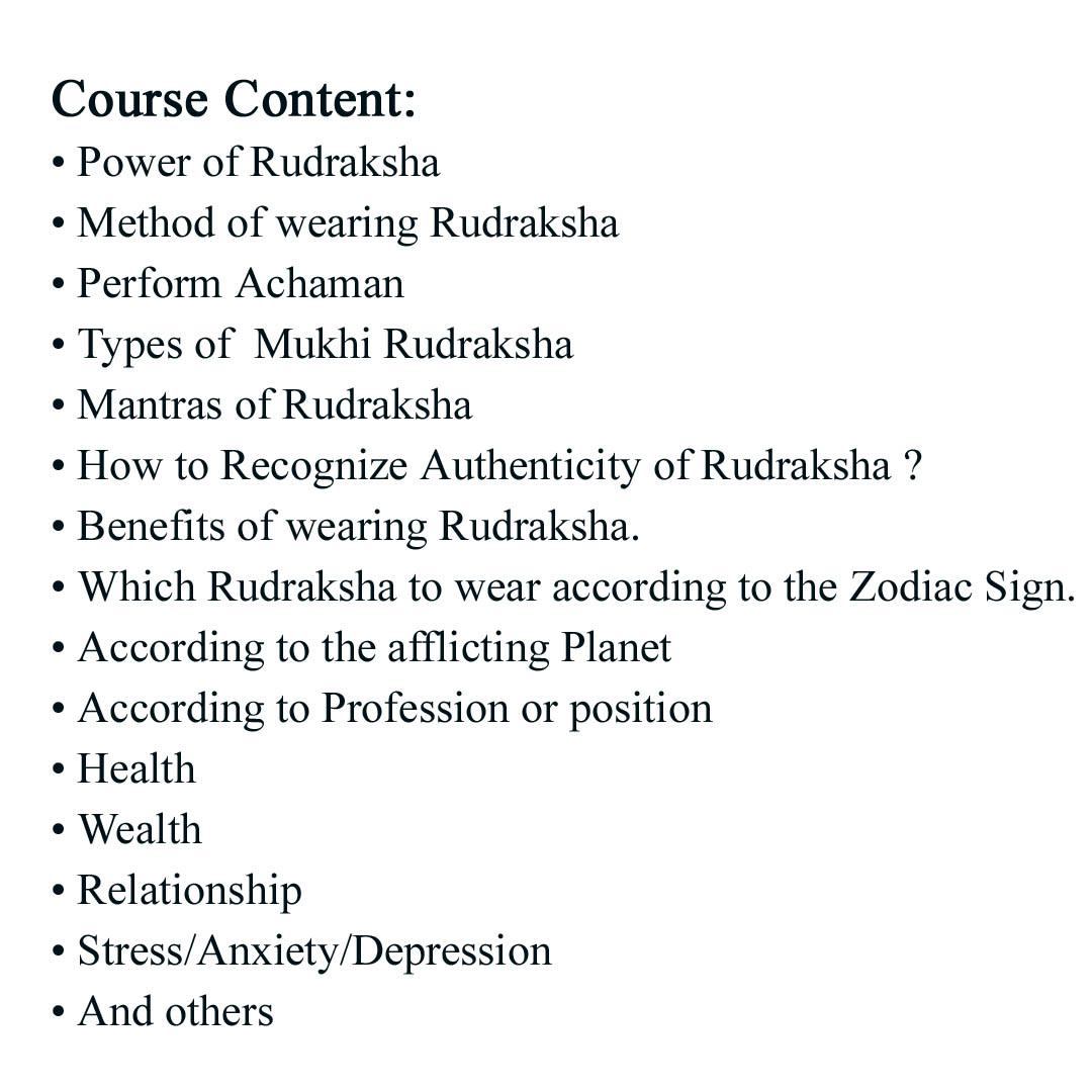 Power of Rudraksha / Method of wearing Rudraksha / Perform Achaman / Types of Rudraksha / Mantras / Recognize Authenticity of Rudraksha / Benefits of wearing Rudraksha / Wearing Rudraksha according to the Zodiac Sign / afflicting Planet,Profession,position / Health / Wealth / Relationship/ Stress/Anxiety/Depression
